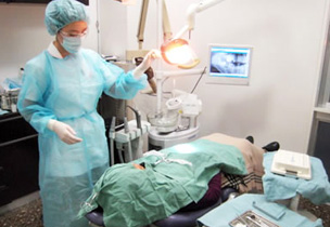 複雑で時間がかかるケース、外科処置に不安がある、血圧が不安定な方等は大学病院の歯科麻酔科で研鑽を積んだ歯科医師がが全身管理を行いながら、静脈内鎮静法を用いて無痛治療を行います。痛みを殆ど感じないない状態でより安全に処置を行えます。
